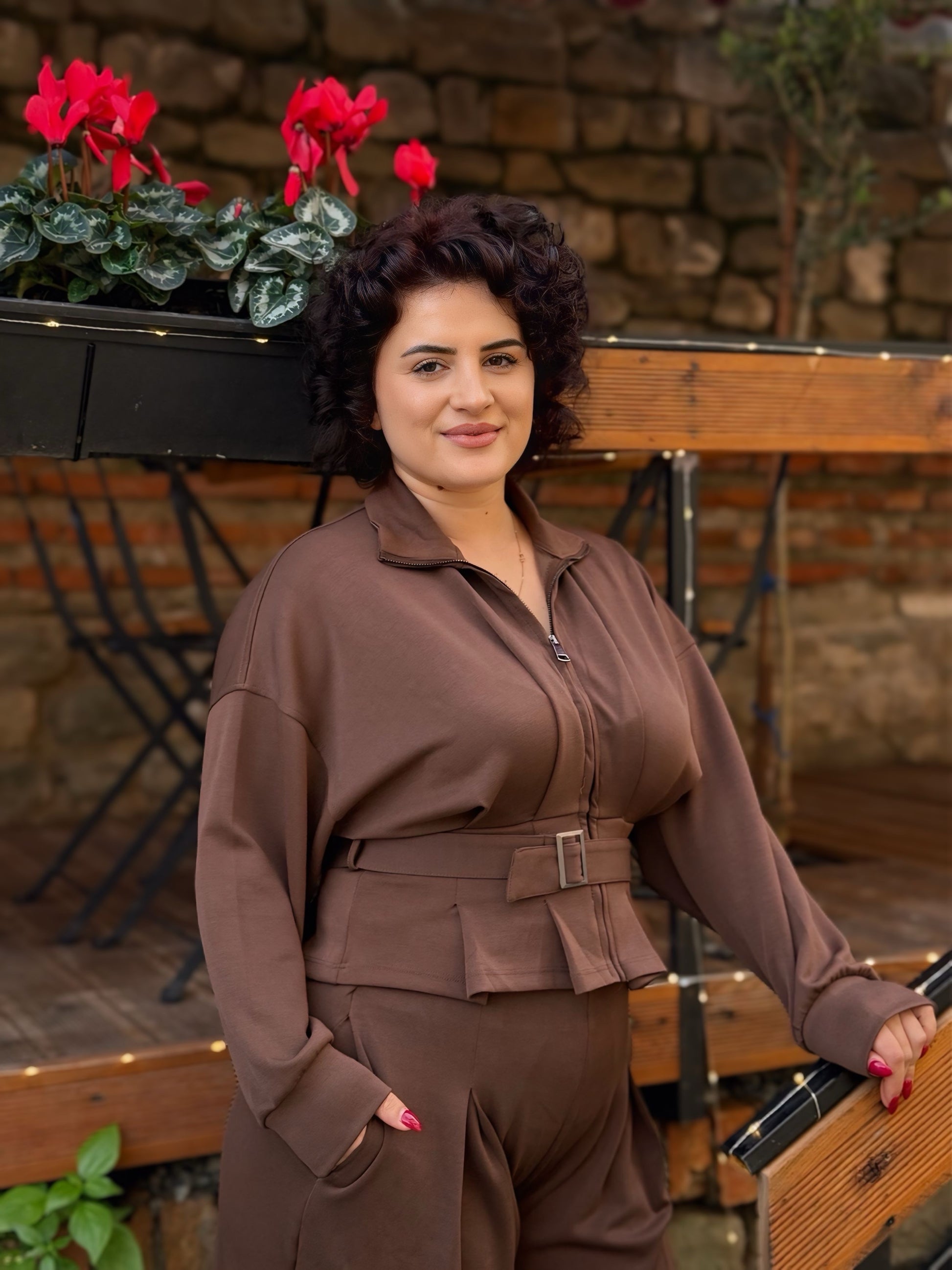 Kostum elegant për femra, me prerje klasike dhe stil modern.